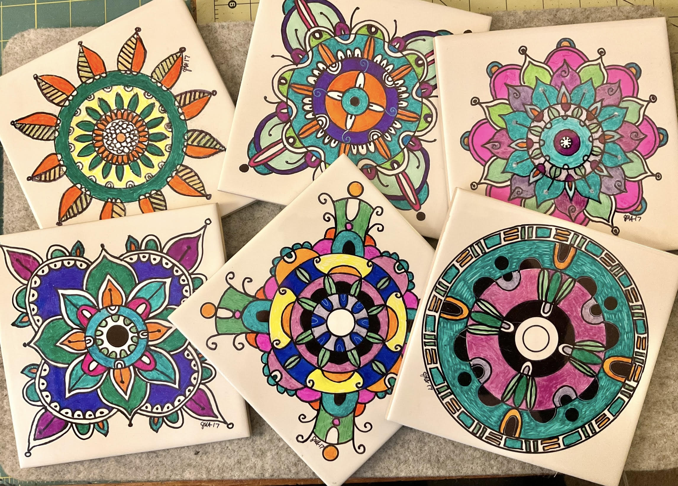 You can create beautiful designs using sharpie markers and different templates on two tiles.